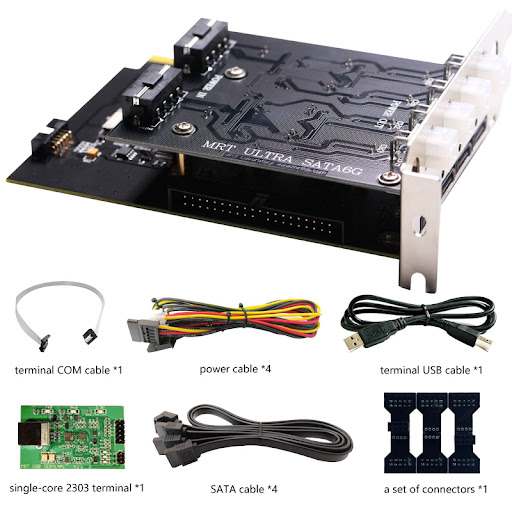 MRT Ultra is a new design of MRT Lab launched in 2015 with brand new framework. It is the world's first PCIE2.0 interface data recovery tool. MRT Ultra is dedicated for high quality, high speed and perfect user experience, which can be classified as high-end configuration among MRT tools. Recently MRT Ultra is released to market, software running platform supports 32-bit and 64-bit Windows operating system. Featured by more ports, more advanced technology, less resource occupancy rate of CPU and hardware design of SATA3.0, there are two main power input, 4 power supply output interfaces, 4 SATA3.0 interfaces and 1 IDE interface. At the same time, there is great enhancement in performance of MRT Ultra. Test firmware transmission speed is raised from 2MByte/s to 33MByte/s. Test DE imaging speed raised to 460MByte/s. Theoretical transmission speed is as high as 600MByte/s. This tool is a good choice for user with mass business volume, professional data recovery company and disk repair institution. There are online full version, offline full version, online repair version and offline repair version software.