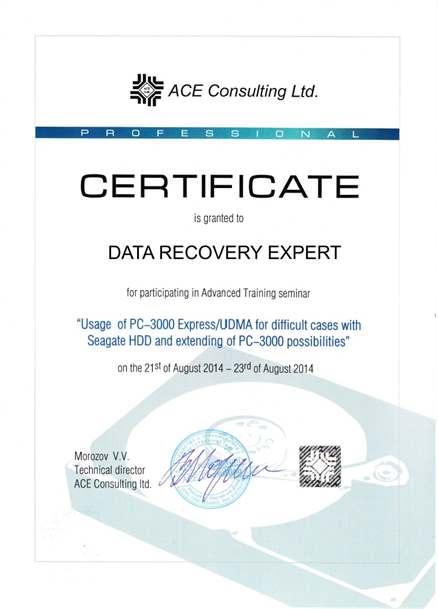 Oleg is highly experienced in electronic devices development, repair, and data recovery. He is also a certified engineer in computer service and computer repair, and has certificates from the world's leading computer companies, such as Toshiba, Asus, Dell, WD, Seagate. Oleg also takes part in the annual training provided by Ace Lab, the leading company in data recovery software and equipment development. He is trained in data retrieval from hard drives, RAID, NAND, QNAP, memory based devices, CD, DVD, and from all devices wherever there is a place to store information.